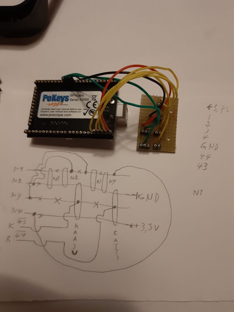 Ylemmän kuvan Pokeys-piirilevyn USB-liittimen ulostulon sovitus onnistui hyvin.