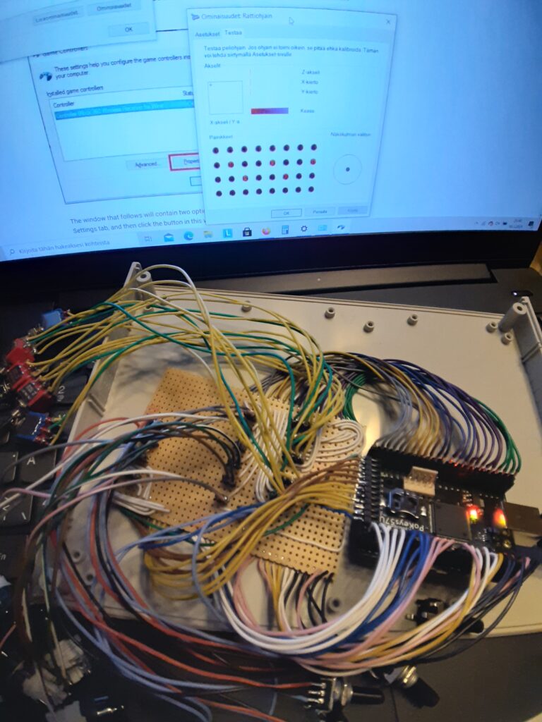 Testataan miten systeemi toimii, tämä kuva on toisesta tämän rattiohjain jälkeen tehdystä projektista. Rattiohjaimessa tehdään vastaavat testit. Siitä ei tullut vain otettua kuvaa.